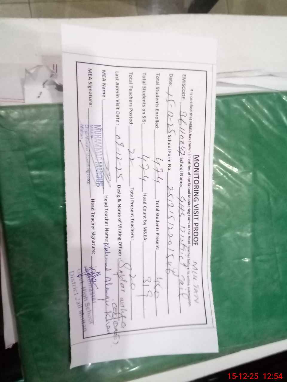 | EMIS Code: 36110047 | Name of School: GHS DISTRICT JAIL MULTAN | |||
