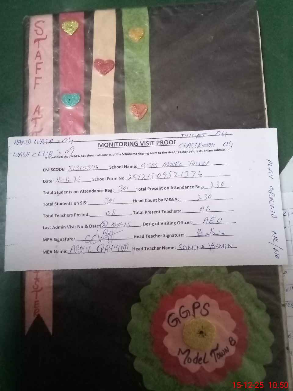| Attendance Register | Head Teacher | MEA with School | Visit Proof |