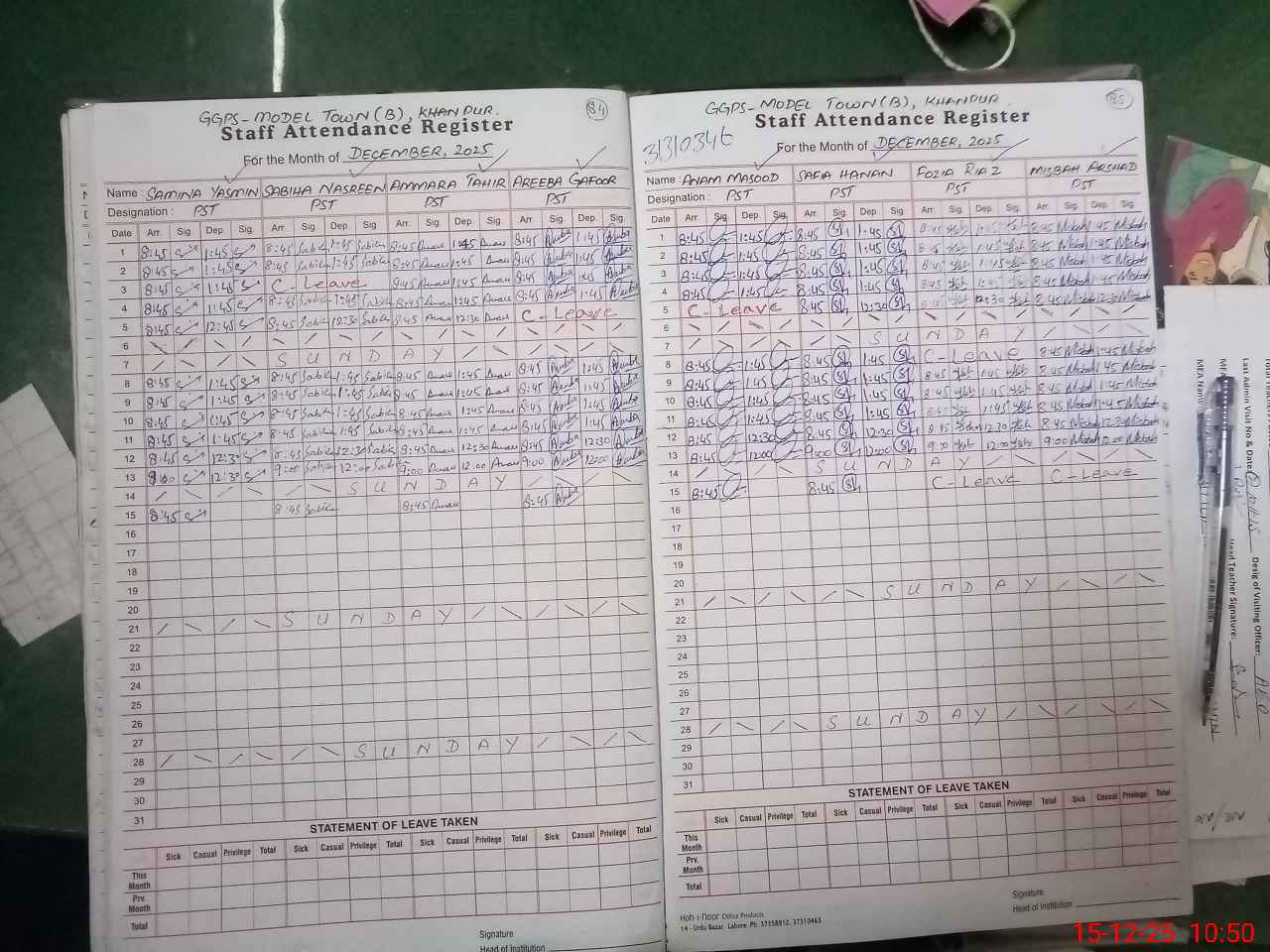 | CNIC | Full Name | Designation | R/C | Absence During Last Calender Month |