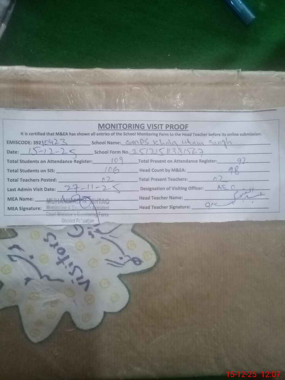 | EMIS Code: 39210423 | Name of School: GMPS KHOLA UTAM SINGH | |||