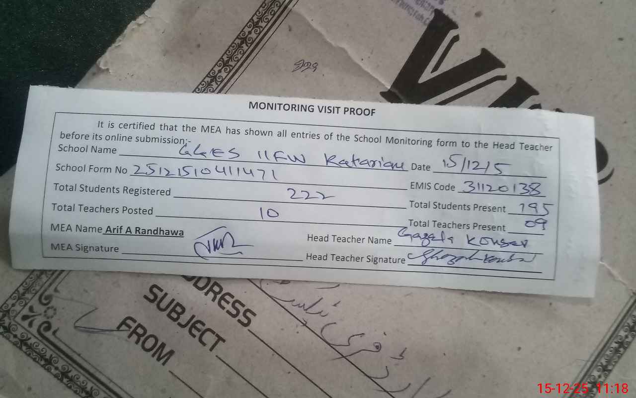 | EMIS Code: 31120138 | Name of School: GGES CHAK NO. 11/FW KATARIAN | |||