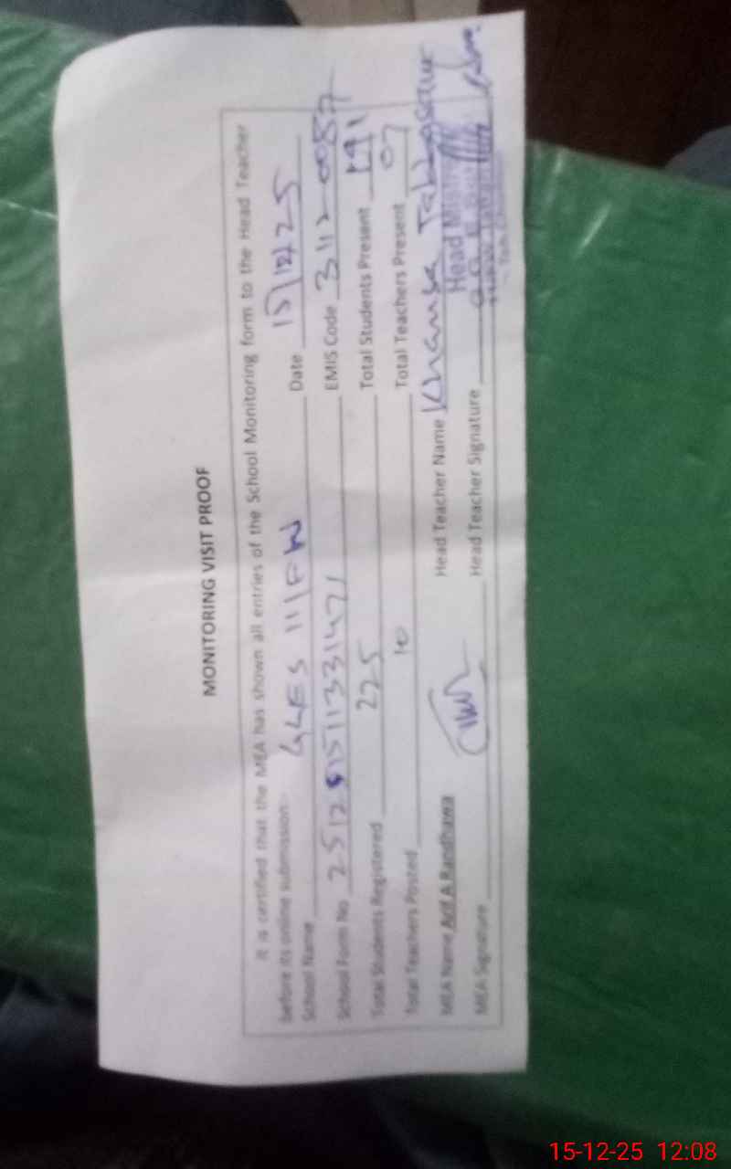 | Attendance Register | Head Teacher | MEA with School | Visit Proof |