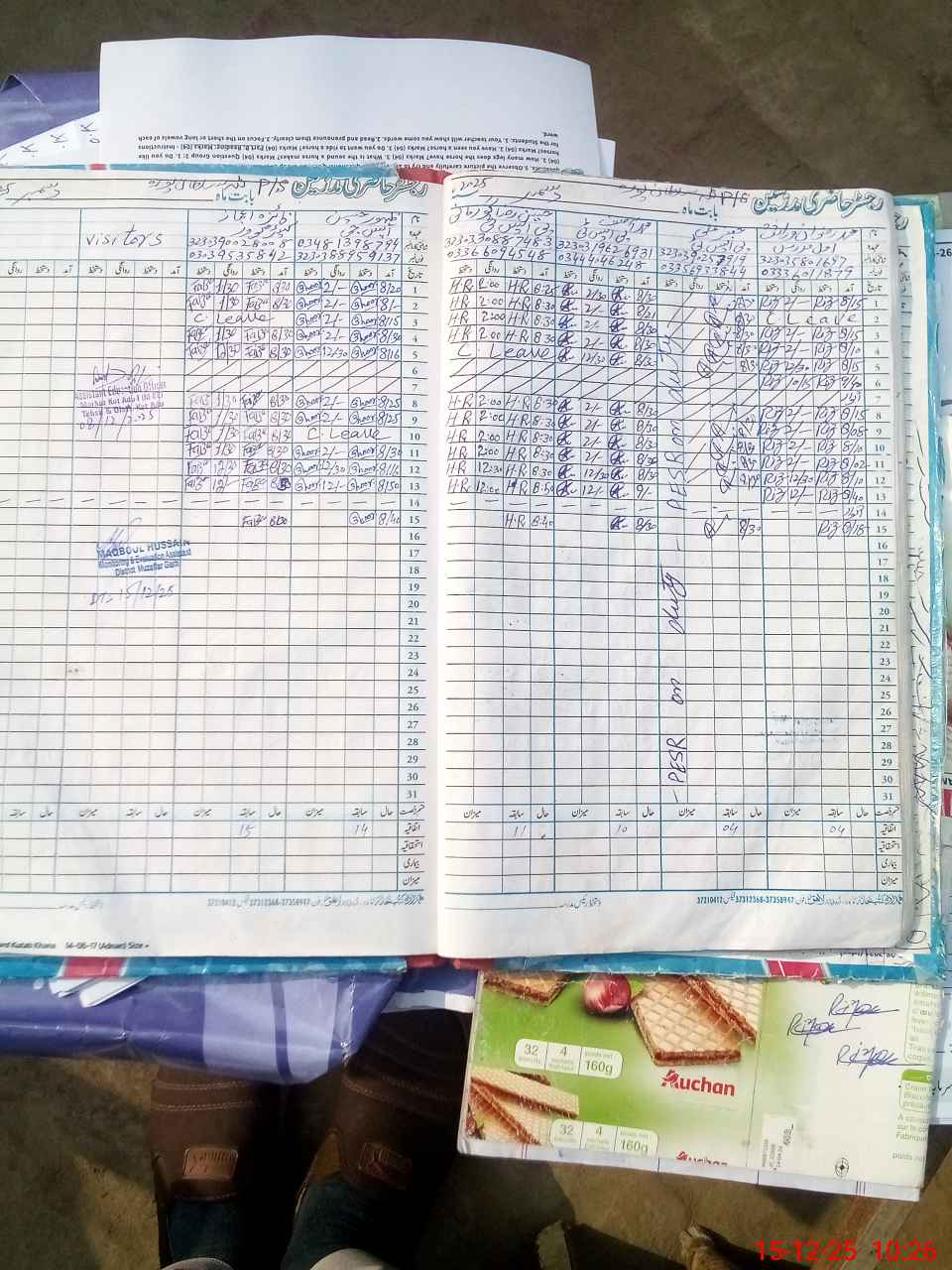 | CNIC | Full Name | Designation | R/C | Absence during last cal. month |