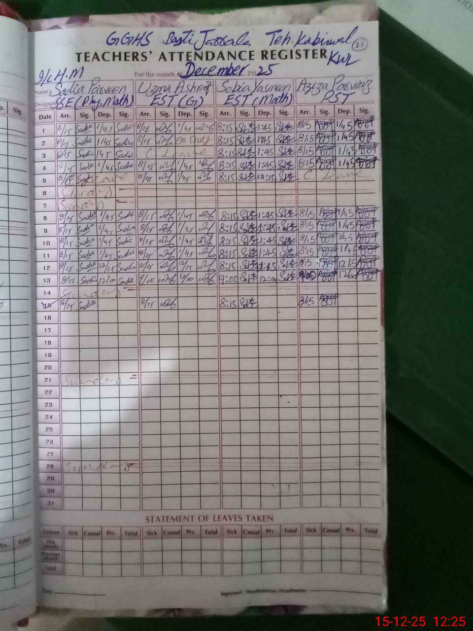 | EMIS Code: 36410136 | Name of School: GGHS BASTI JARALA ABDUL HAKIM | |||
