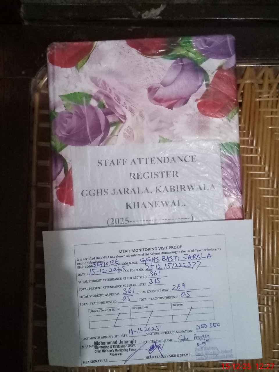 | Attendance Register | Head Teacher | MEA with School | Visit Proof |