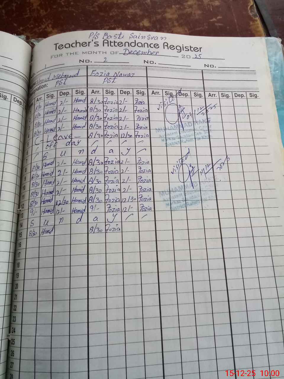 | CNIC | Full Name | Designation | R/C | Absence During Last Calender Month |