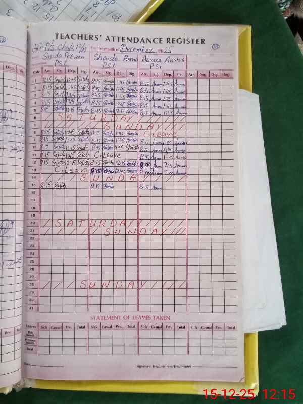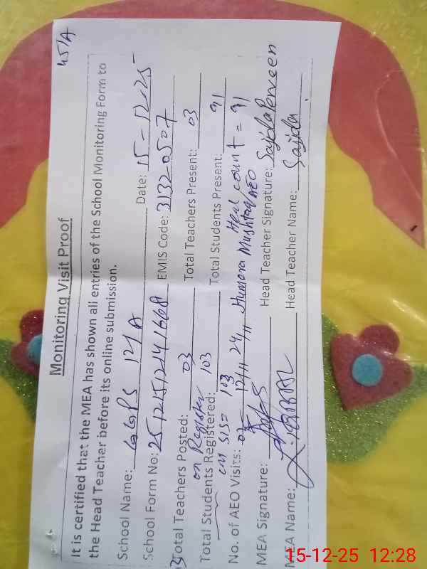 | Attendance Register | Head Teacher | MEA with School | Visit Proof |
