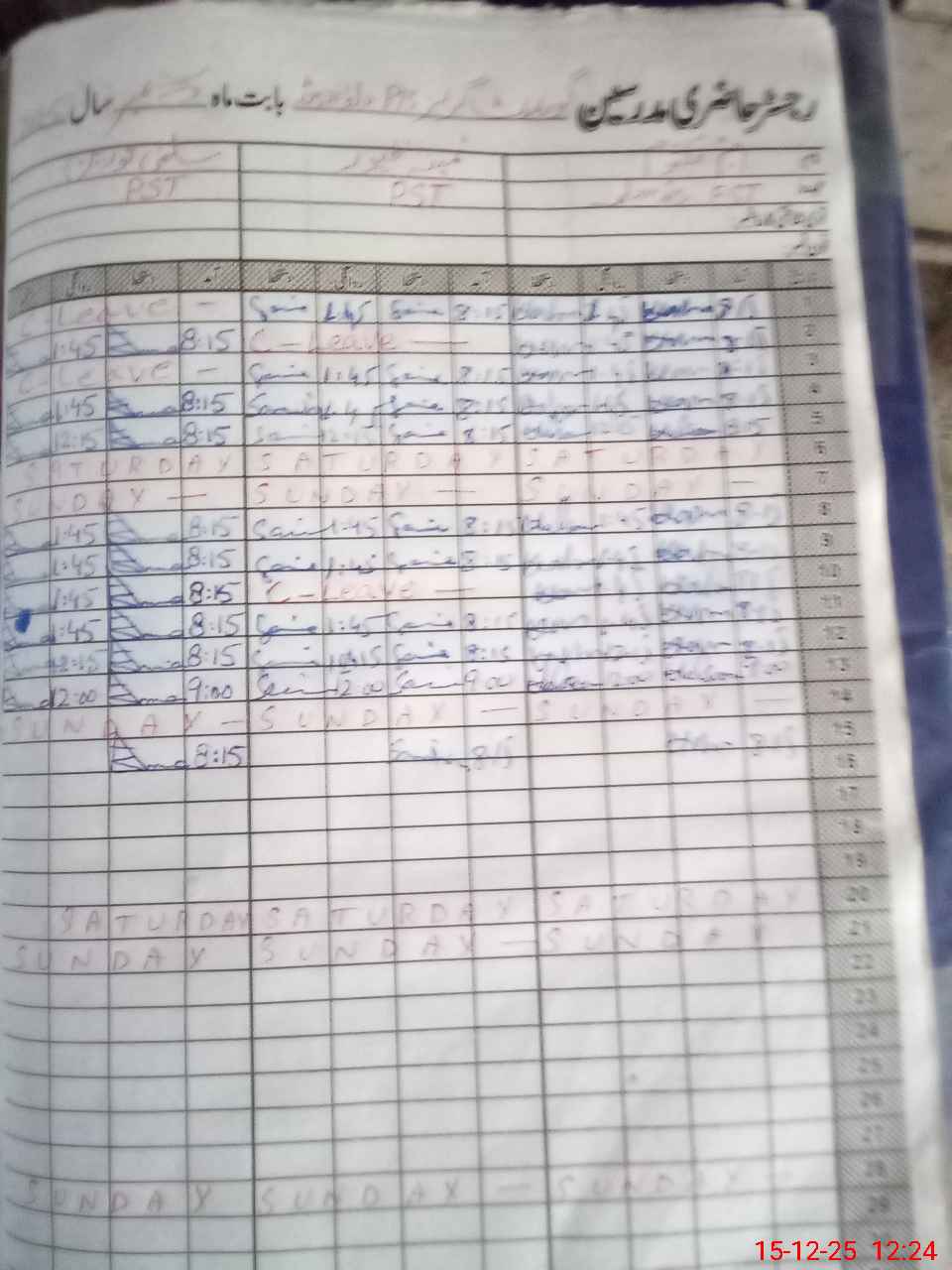 | CNIC | Full Name | Designation | R/C | Absence During Last Calender Month |