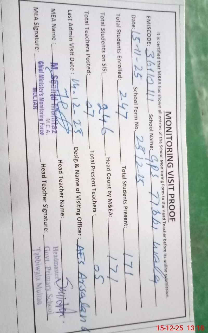 | EMIS Code: 36110111 | Name of School: GPS TIBI WALA MOZA DURANA LINGANA | |||