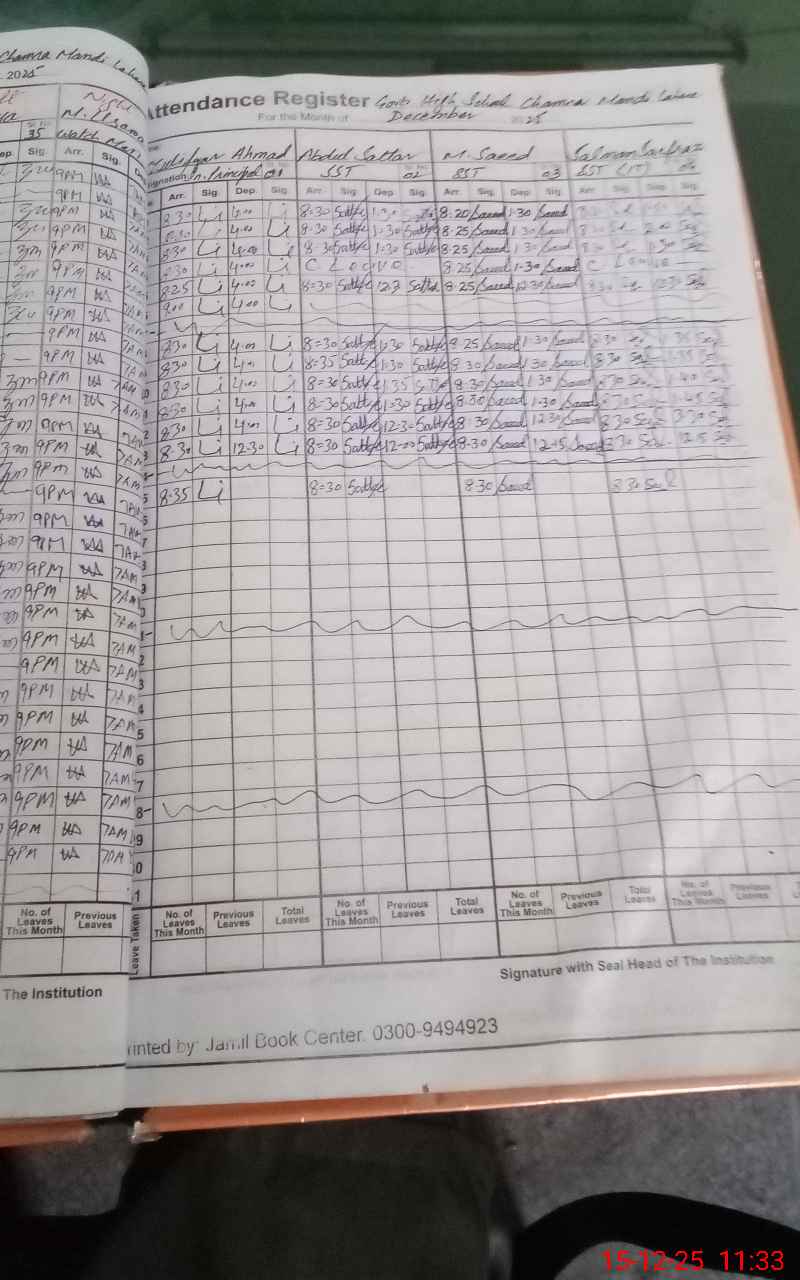 | 35**** | Kh**** Ma**** | EST Urdu | Regular | 0 | 0 | 0 | 0 | 0 | 0 | 0 | 0 | 0 | Absent (Un-Authorized) |
