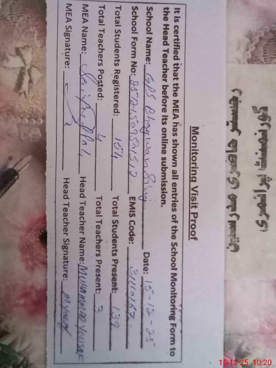 | EMIS Code: 31110167 | Name of School: GPS BHAGWAN SINGH | |||