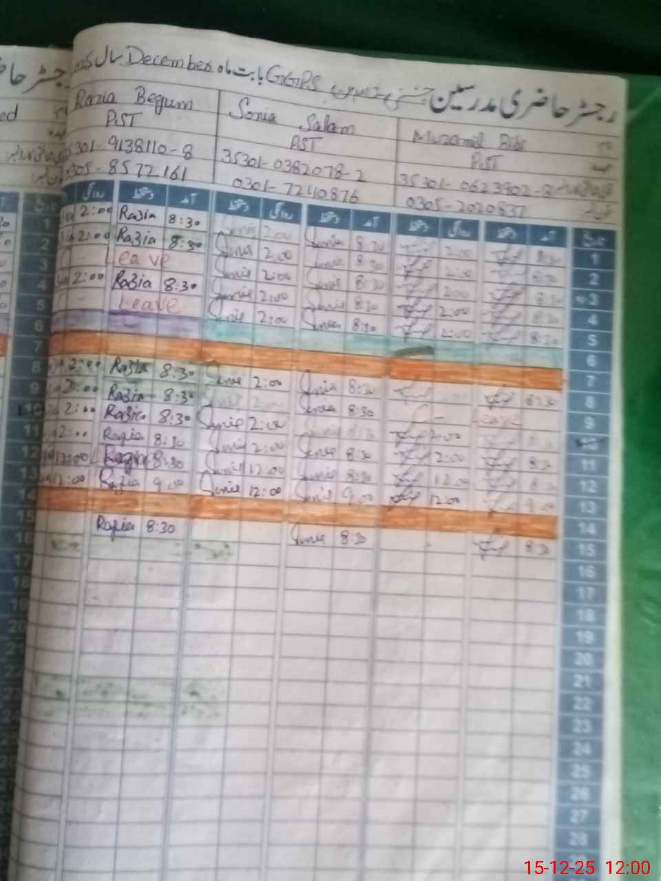 | Name: Mu**** Bi**** Designation: (School Headmaster's/Headmistress's) PST Phone/Cell Number: 03**** |