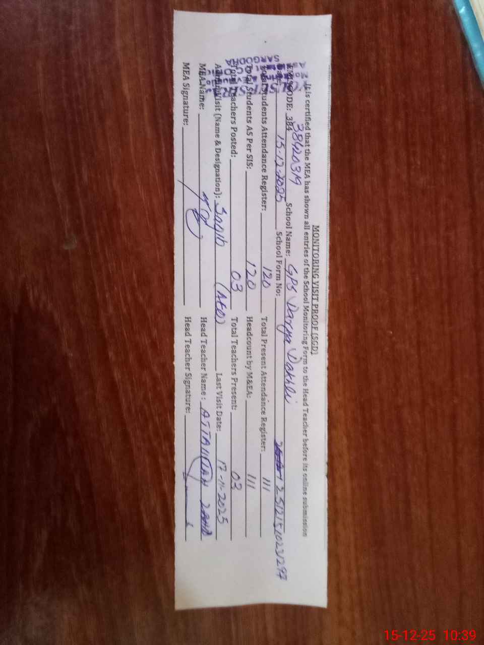 | EMIS Code: 38420319 | Name of School: GPS DARYA (DHAKLI) | |||