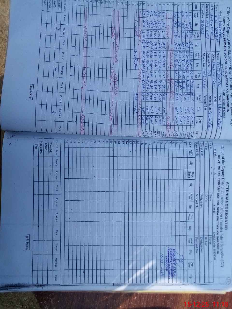 | Name: AS**** TA**** Designation: (School Headmaster's/Headmistress's) PST Phone/Cell Number: 03**** |