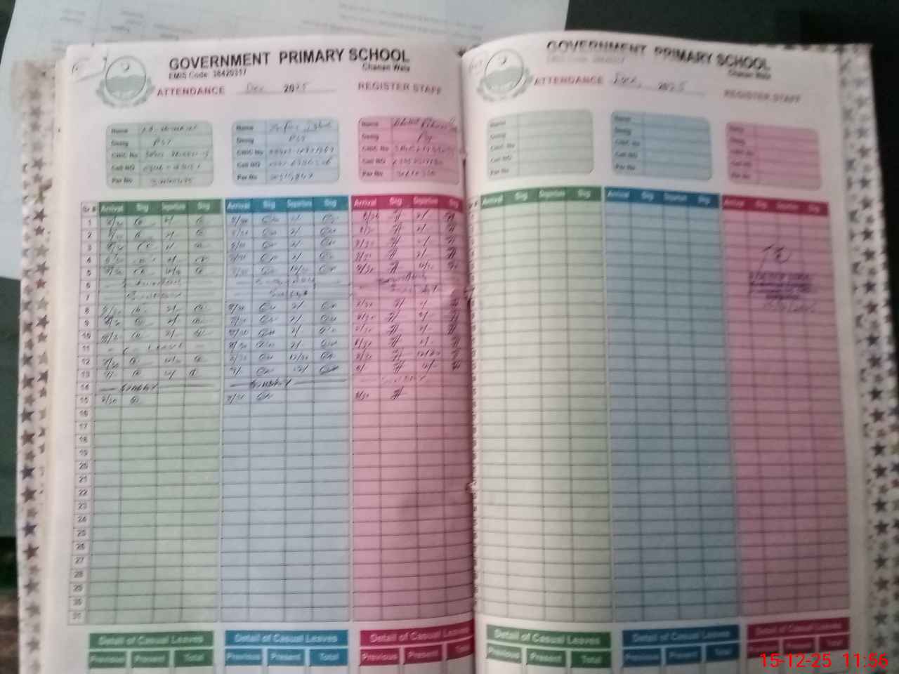 | CNIC | Full Name | Designation | R/C | Absence During Last Calender Month |