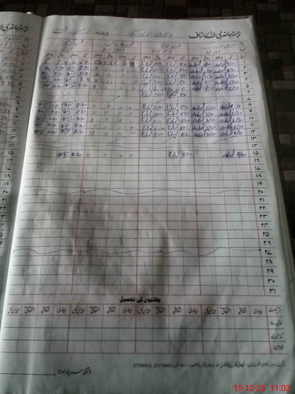 | CNIC | Full Name | Designation | R/C | Absence During Last Calender Month |