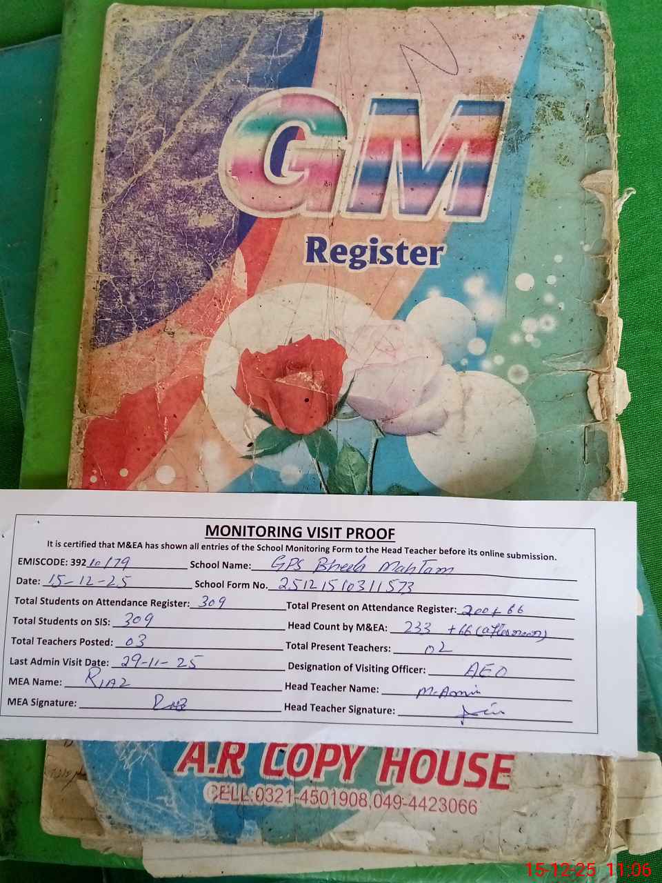 | EMIS Code: 39210179 | Name of School: GPS BHEELA MAHTAM | |||