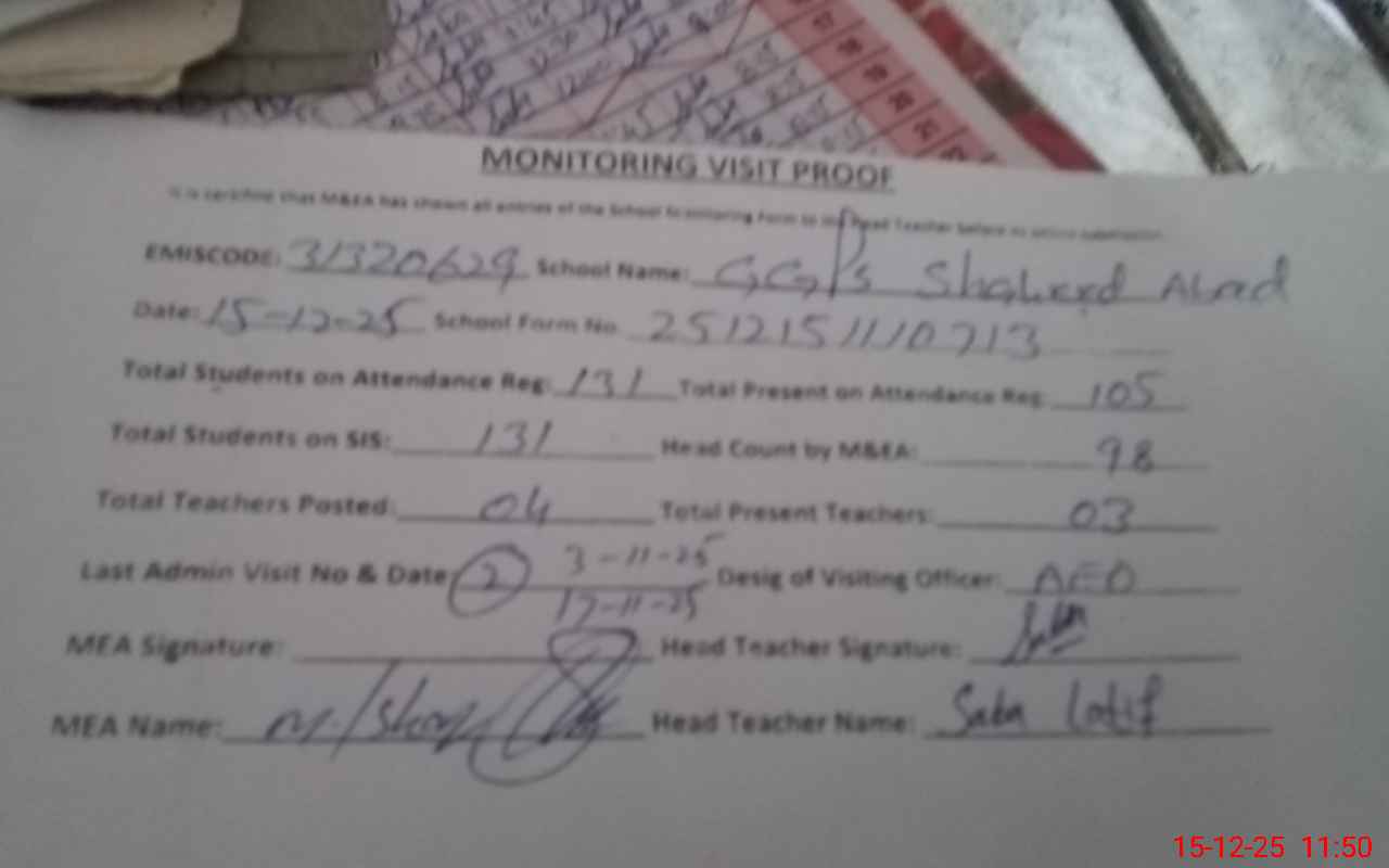 | EMIS Code: 31320629 | Name of School: GGPS SHAHEED ABAD | |||