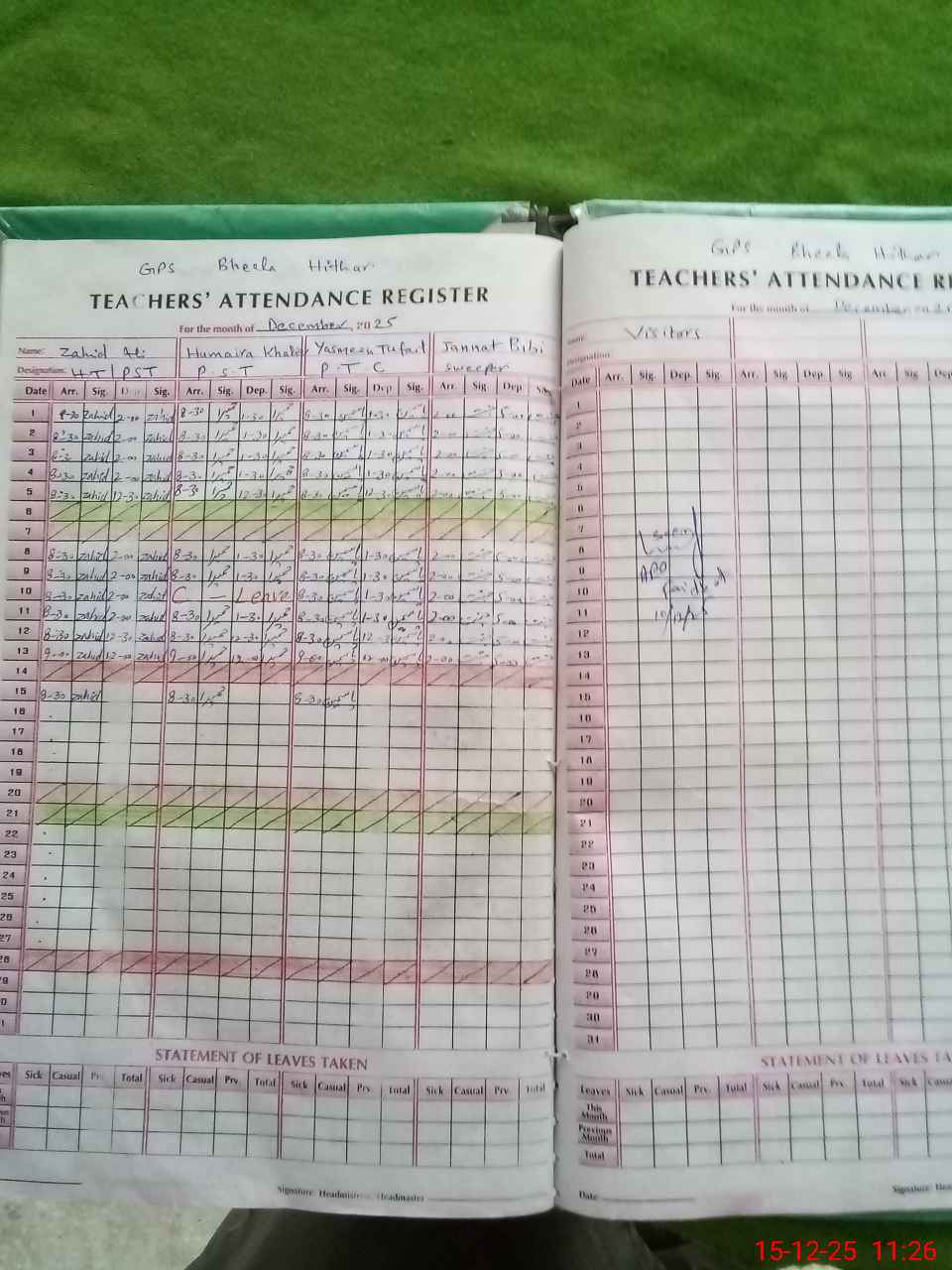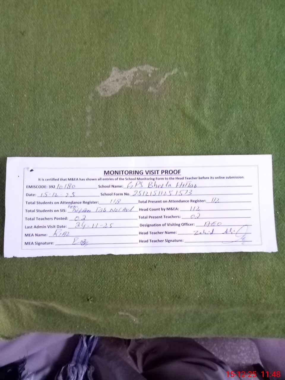 | Attendance Register | Head Teacher | MEA with School | Visit Proof |