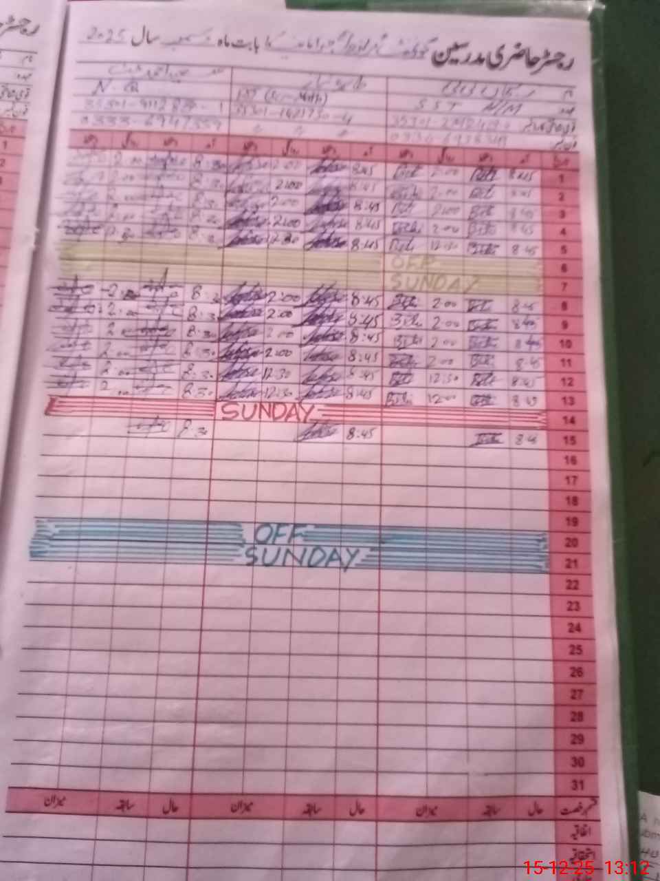 | CNIC | Full Name | Designation | R/C | Absence During Last Calender Month |