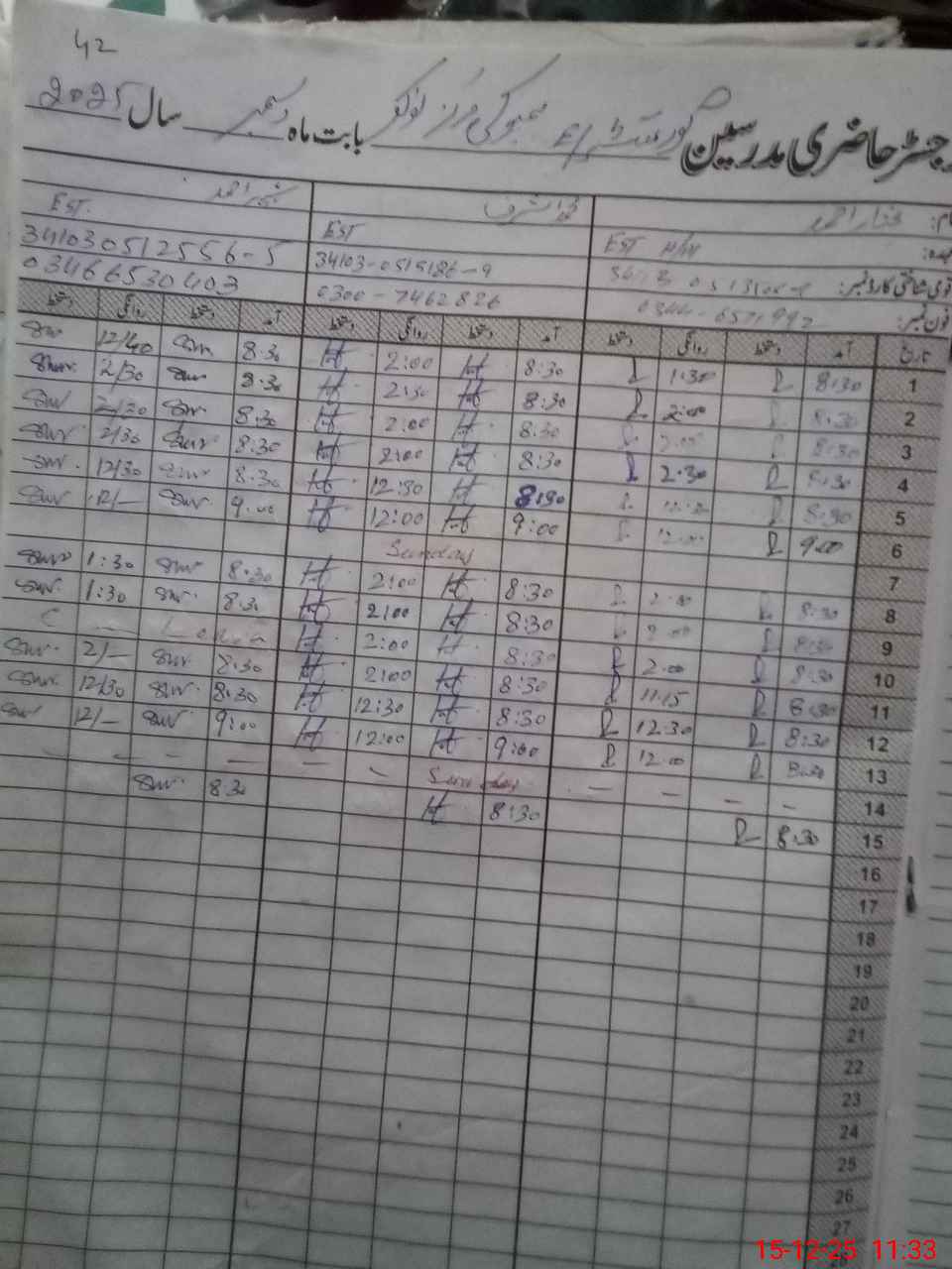 | CNIC | Full Name | Designation | R/C | Absence During Last Calender Month |