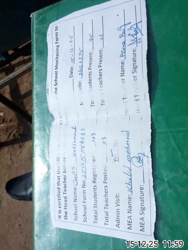 | EMIS Code: 34120275 | Name of School: GPS HASSAN WALI | |||