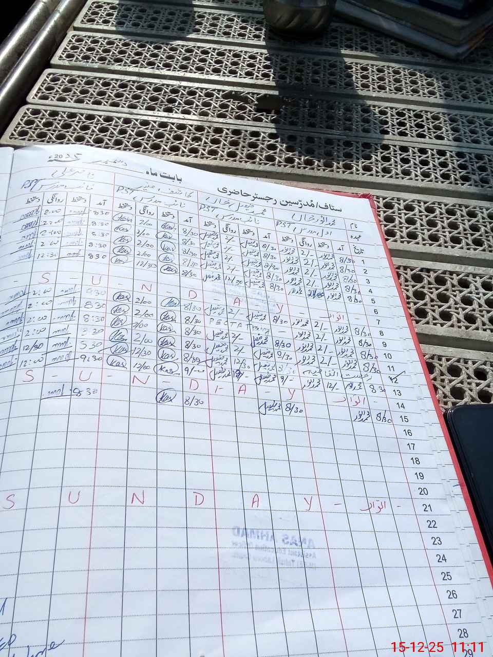 | CNIC | Full Name | Designation | R/C | Absence During Last Calender Month |