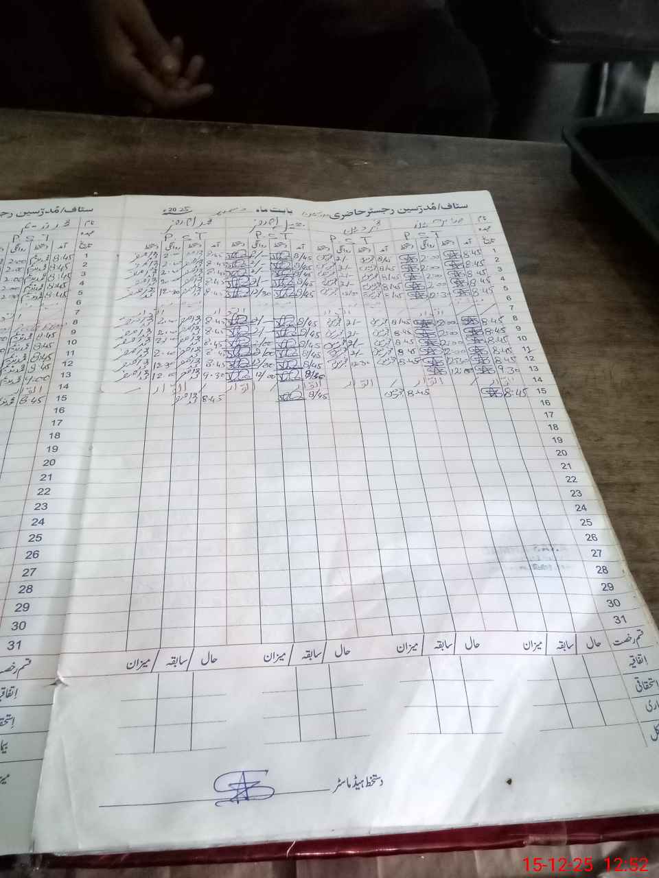 | CNIC | Full Name | Designation | R/C | Absence during last cal. month |