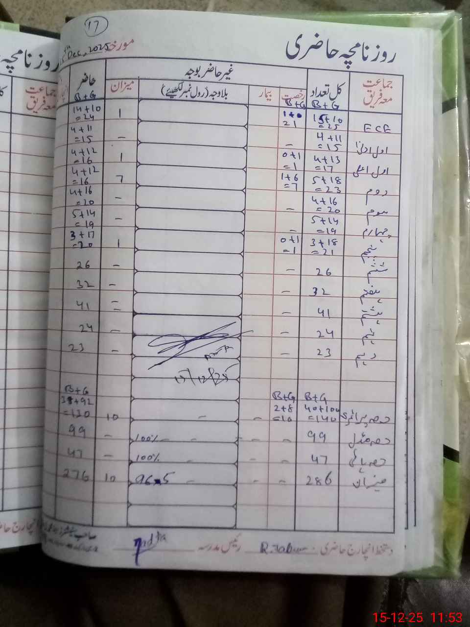 | CNIC | Full Name | Designation | R/C | Absence During Last Calender Month |