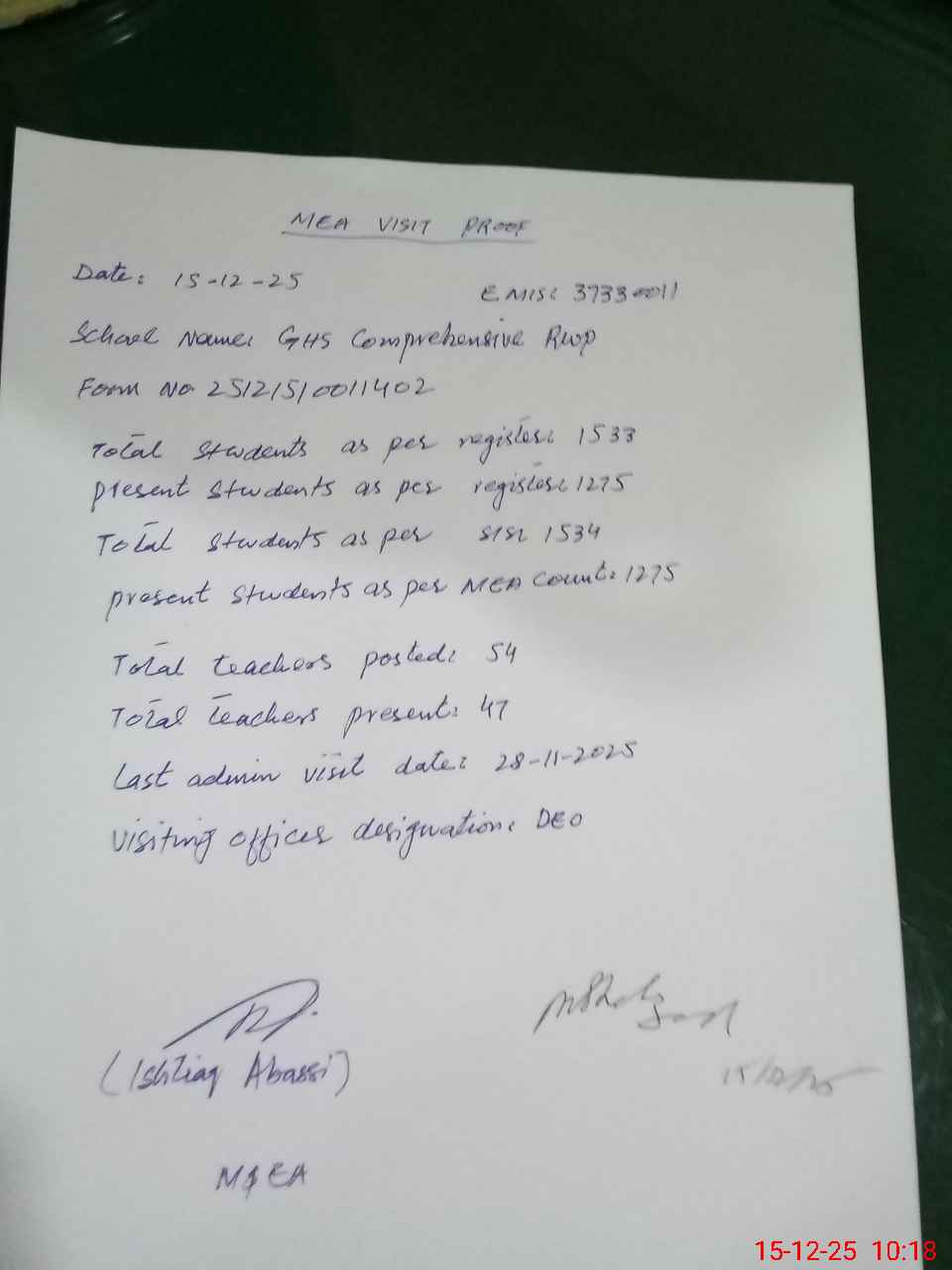 | EMIS Code: 37330011 | Name of School: GHS COMPREHENSIVE RAWALPINDI | |||