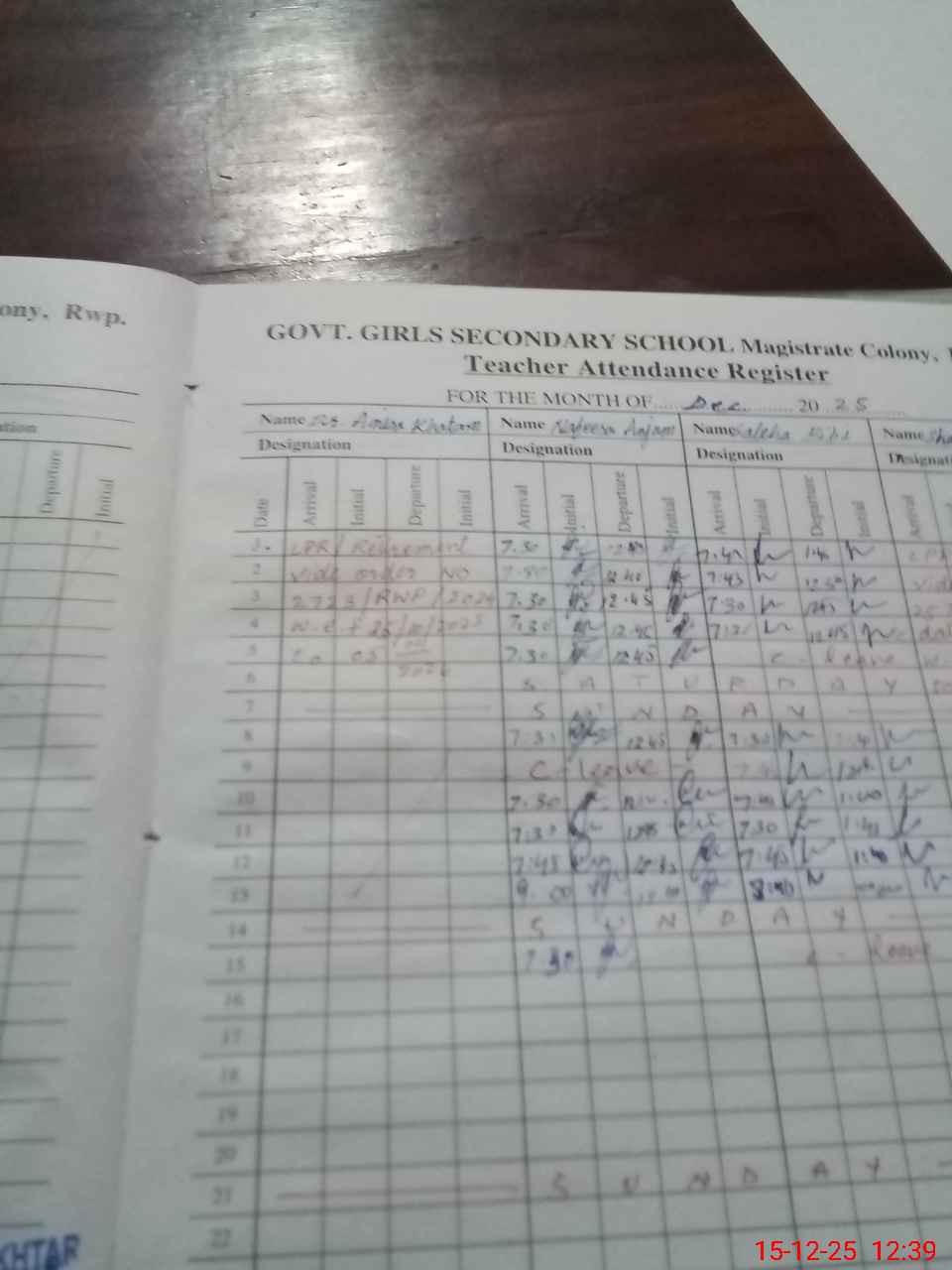 | CNIC | Full Name | Designation | R/C | Absence During Last Calender Month |