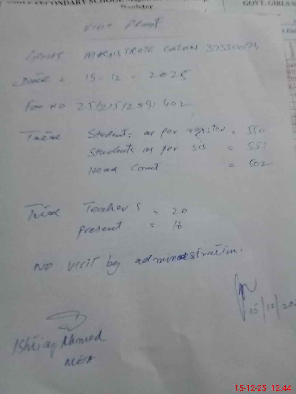 | EMIS Code: 37330074 | Name of School: GGHS MAGISTRATE COLONY | |||