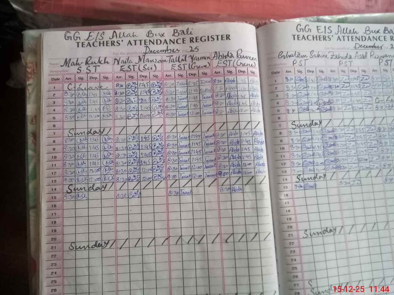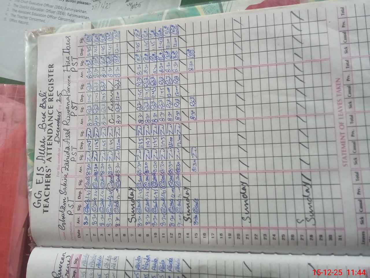 | CNIC | Full Name | Designation | R/C | Absence During Last Calender Month |