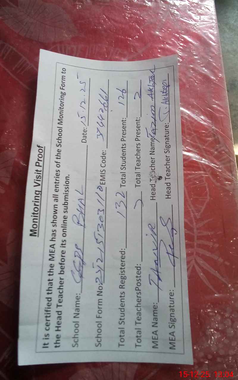 | EMIS Code: 37440661 | Name of School: GGPS BHALL P/O BHALL CHAKWAL | |||
