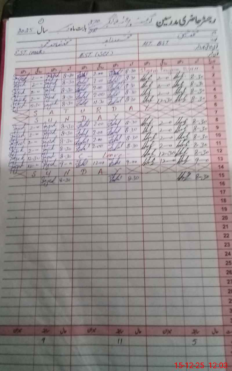 | 31**** | Mu**** Sh**** | EST Urdu | Regular | 0 | 0 | 0 | 0 | 0 | 0 | 0 | 0 | 0 | Absent (Un-Authorized) |