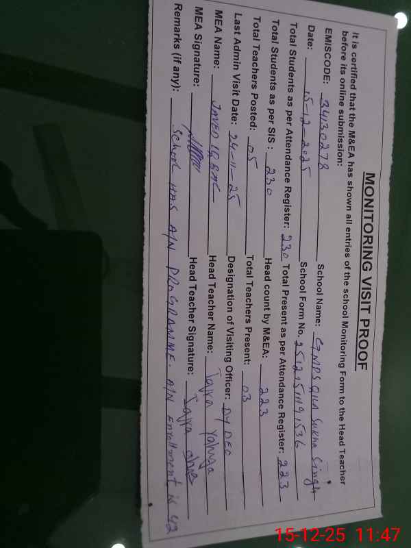 | EMIS Code: 34130278 | Name of School: GMPS QILA SUKHA SINGH | |||