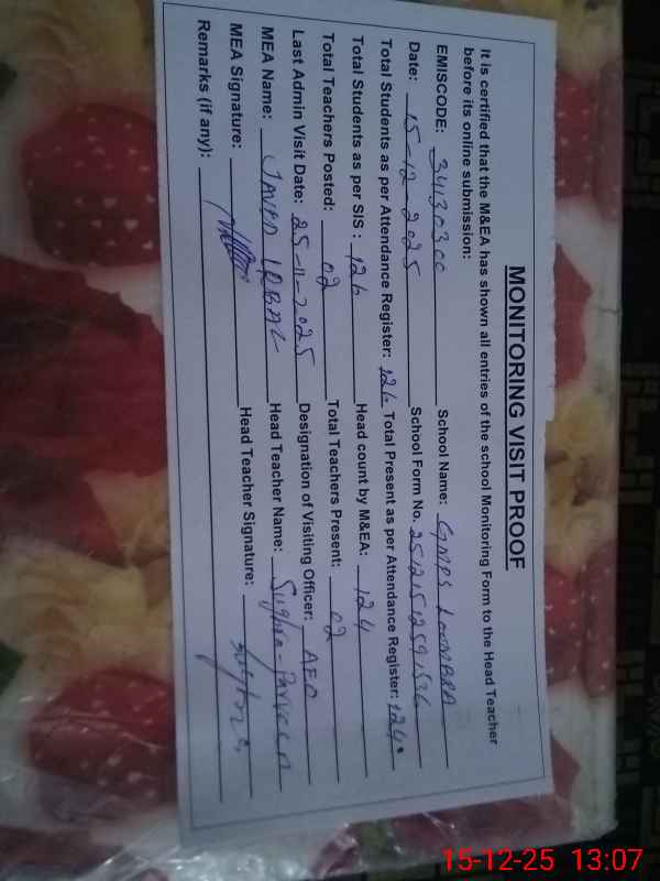 | Certified that this School was Inspected by the Undersigned MEA/DMO Today and the Information Stated Above is as Per Record. | |||||