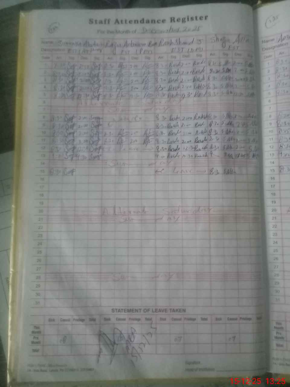 | 36**** | Sh**** Na**** | PST Arts | Regular | 0 | 0 | 0 | 0 | 0 | 0 | 0 | 0 | 0 | Absent (Un-Authorized) |