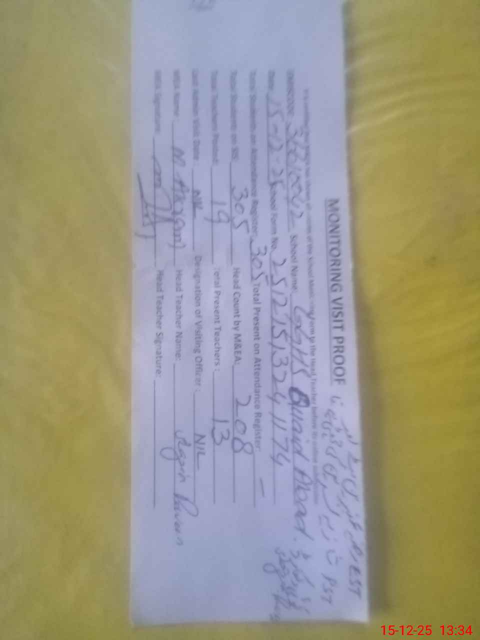 | EMIS Code: 36610042 | Name of School: GGHS QUAID ABAD | |||