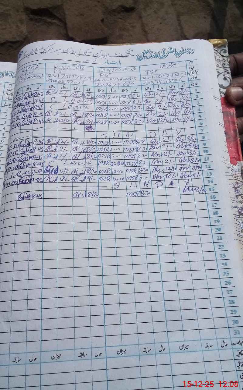 | Name: MU**** AZ**** Designation: (School Headmaster's/Headmistress's) PST Phone/Cell Number: 03**** |