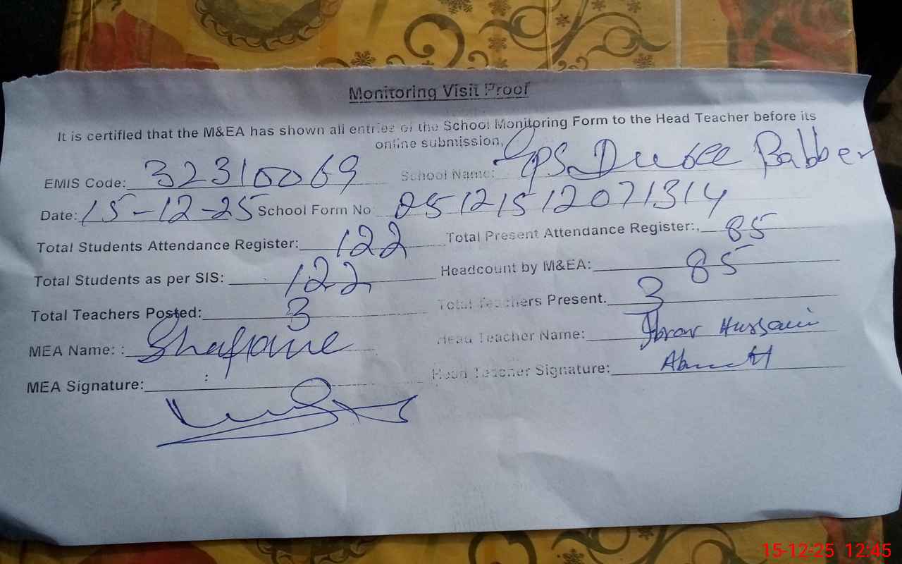 | EMIS Code: 32310069 | Name of School: GPS DUREE BABBER | |||