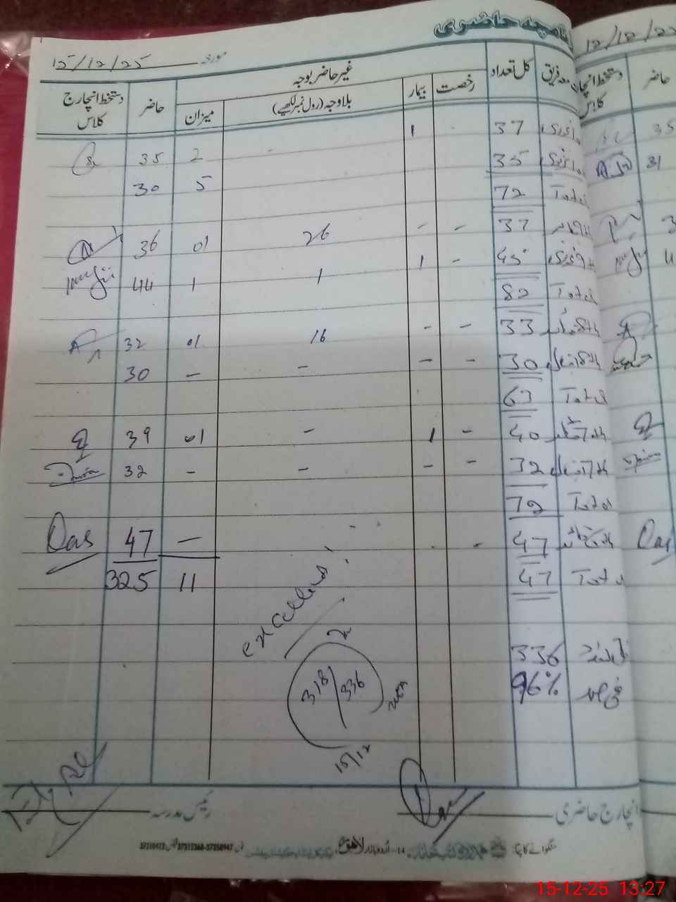 | No. of Students Present - Male | 0 | 0 | 0 | 0 | 0 | 0 | 0 | 47 | 71 | 62 | 74 | 64 | 318 | |||