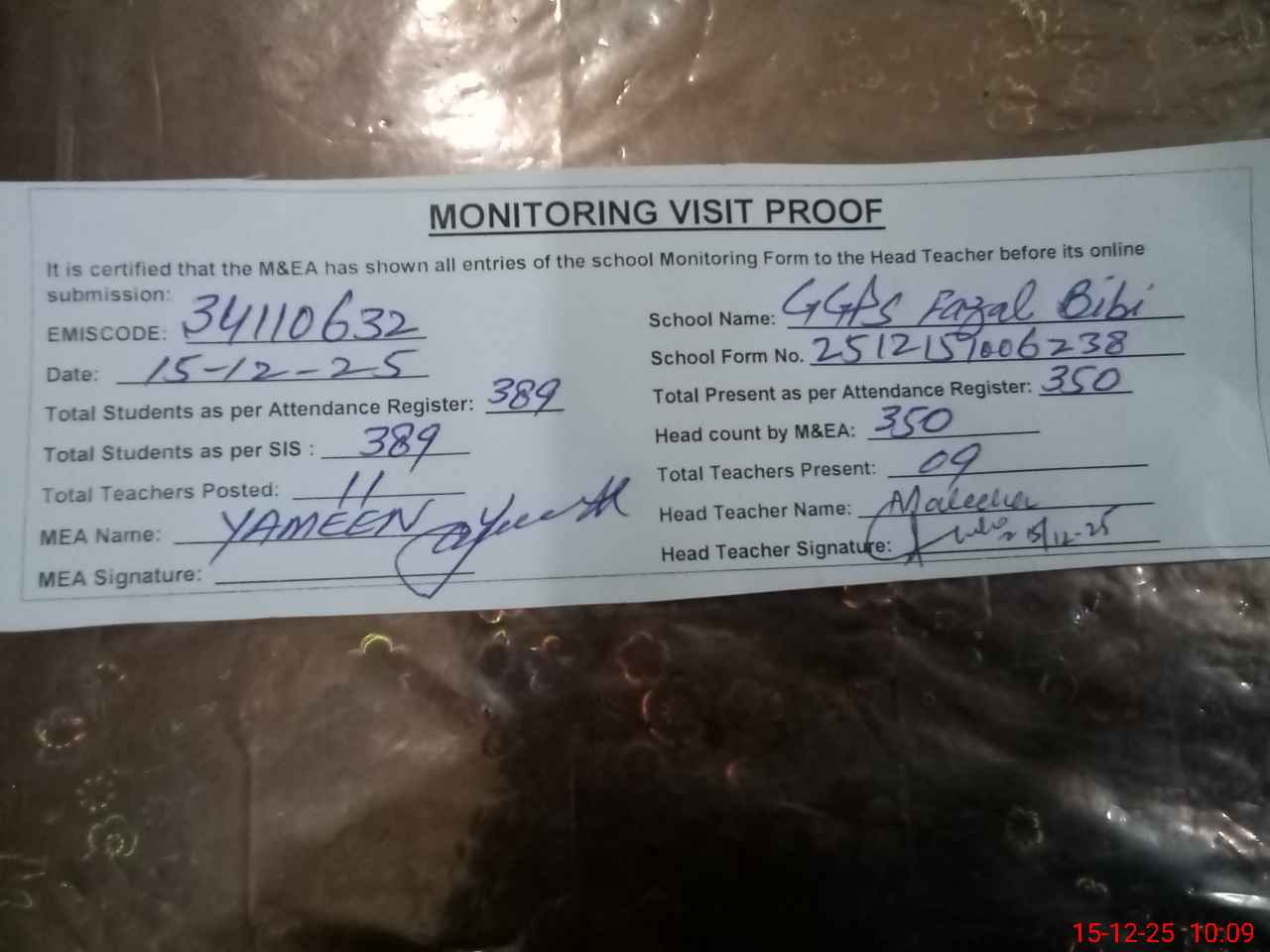 | EMIS Code: 34110632 | Name of School: GGPS FAZAL BIBI GALLA MEHAR NOOR WALA | |||