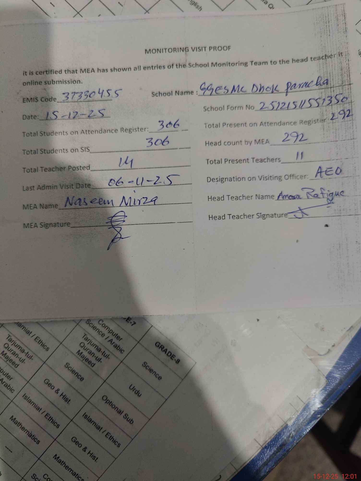 | EMIS Code: 37330455 | Name of School: GGES MC DHOK PARACHA | |||