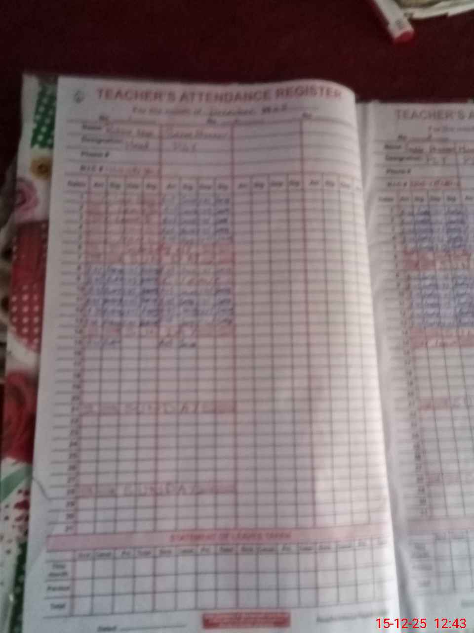 | CNIC | Full Name | Designation | R/C | Absence During Last Calender Month |