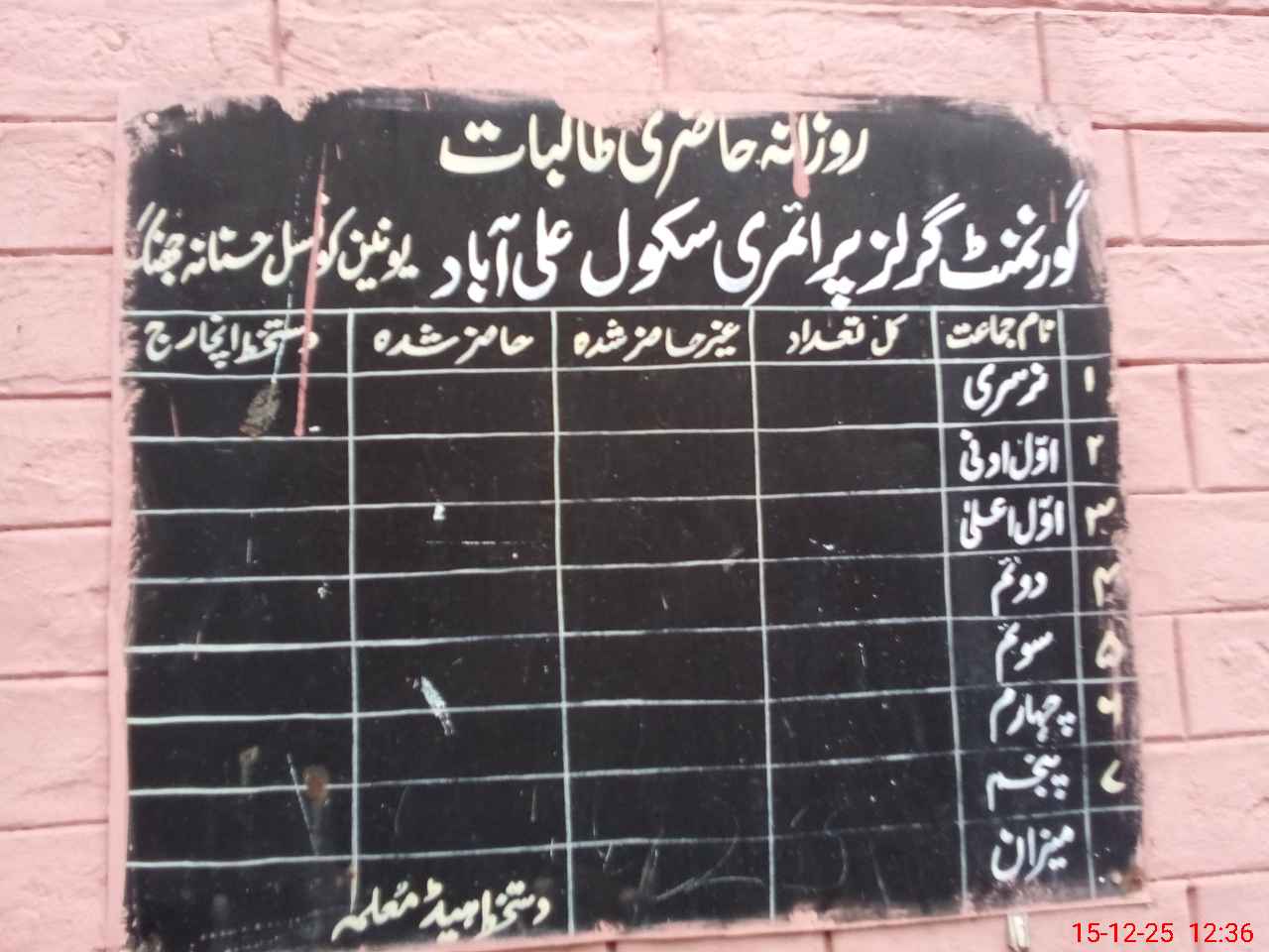 | District: JHANG | Tehsil: JHANG | Markaz: JHANG SADAR - FEMALE | Level: Primary | |