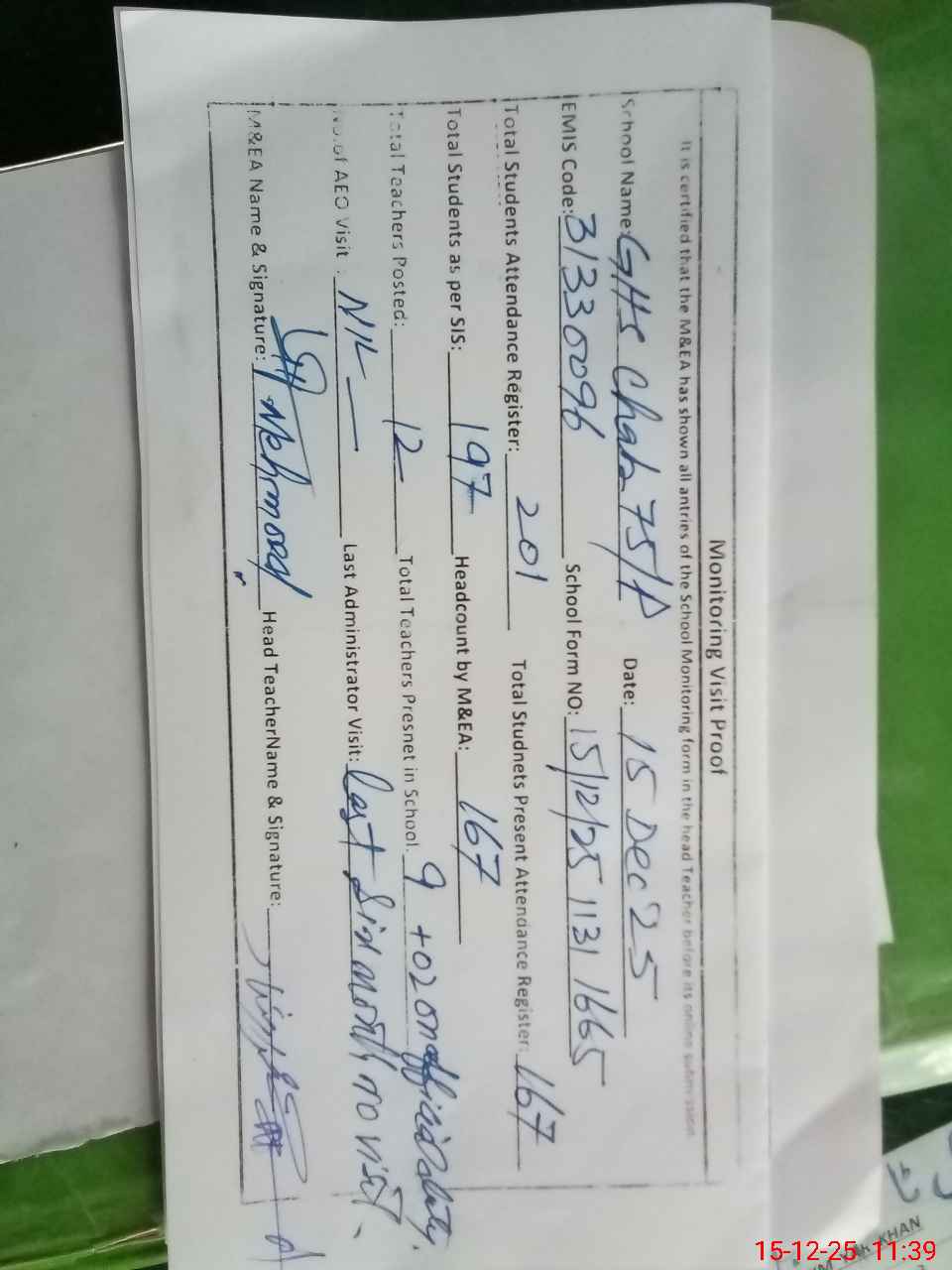 | EMIS Code: 31330096 | Name of School: GHS CHAK 75/P | |||