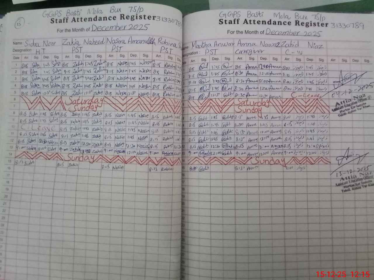 | Monitoring Date: 15-12-2025 | Start Time: 15-12-2025 11:54 AM | End Time: 15-12-2025 12:18 PM | Name of MEA: Ma**** UlHa**** | |