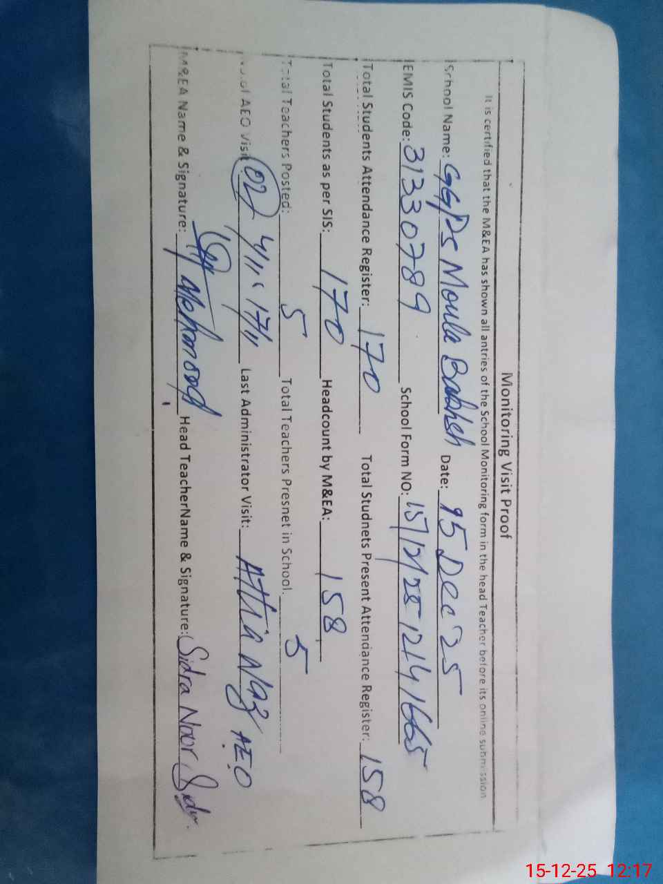 | EMIS Code: 31330789 | Name of School: GGPS BASTI MOLA BAKHSH | |||