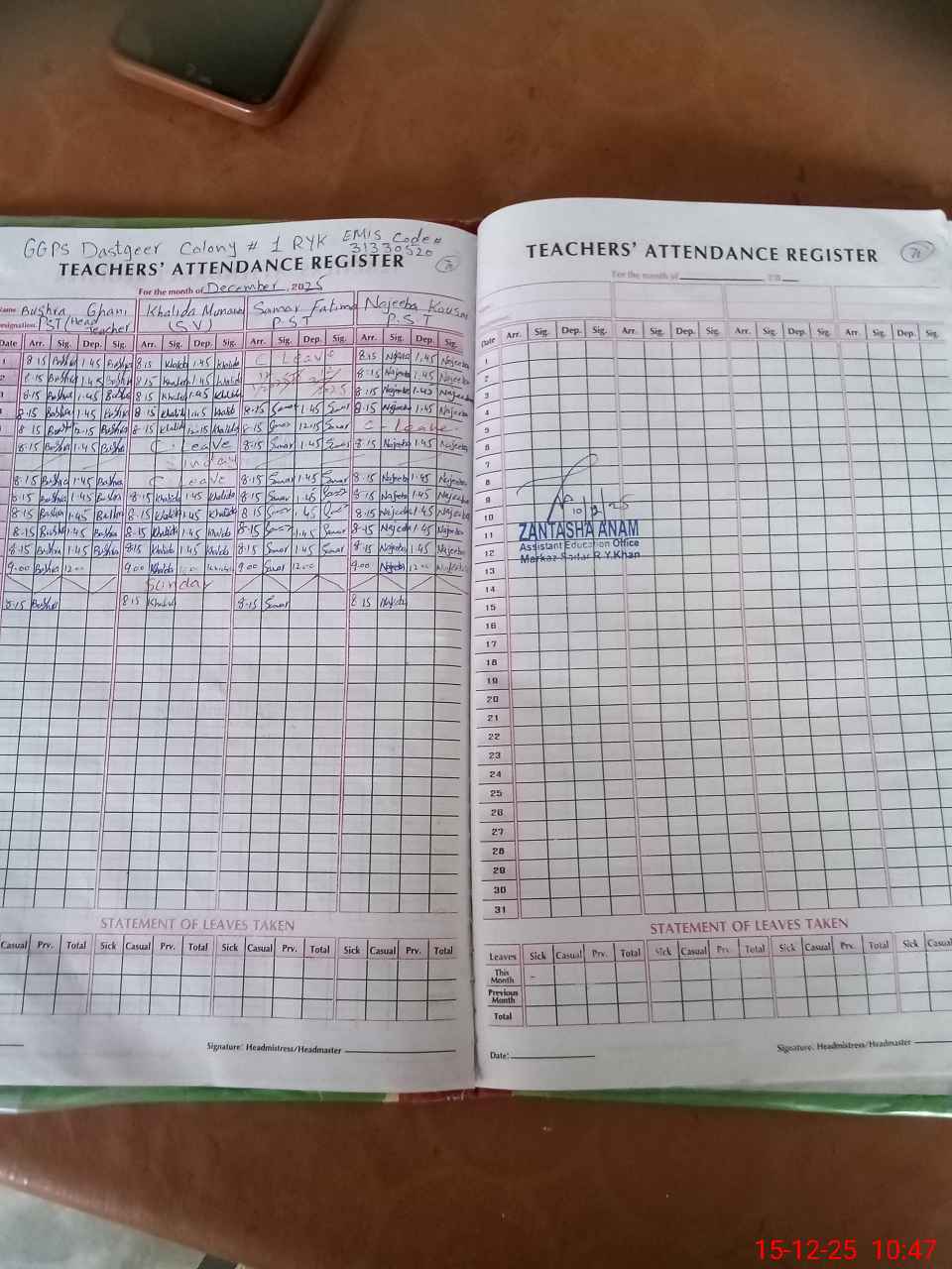 | EMIS Code: 31330520 | Name of School: GGPS DASTGEER COLONY NO. 1 | |||